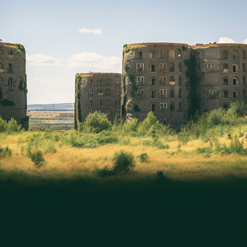 STARTING FROM PHOTOGRAPHS TAKEN TO DOCUMENT THE URBAN DEVELOPMENT OF THE CITY OF ROME, THE RELATIONSHIP BETWEEN NATURAL AND URBANIZED LANDSCAPE IS REPRESENTED BY REWORKING THE PICTORIAL ICONOGRAPHY OF NINETEENTH-CENTURY GRAND TOURS. THE IMAGE OF THE RUINS OF THE ARCHITECTURE OF ANCIENT ROME ISOLATED IN THE MAGNIFICENT LANDSCAPE OF THE ROMAN COUNTRYSIDE IS REPLACED BY THAT OF AN UNSTOPPABLE URBANIZATION CROSSED TODAY AS THEN BY GRAZING FLOCKS.